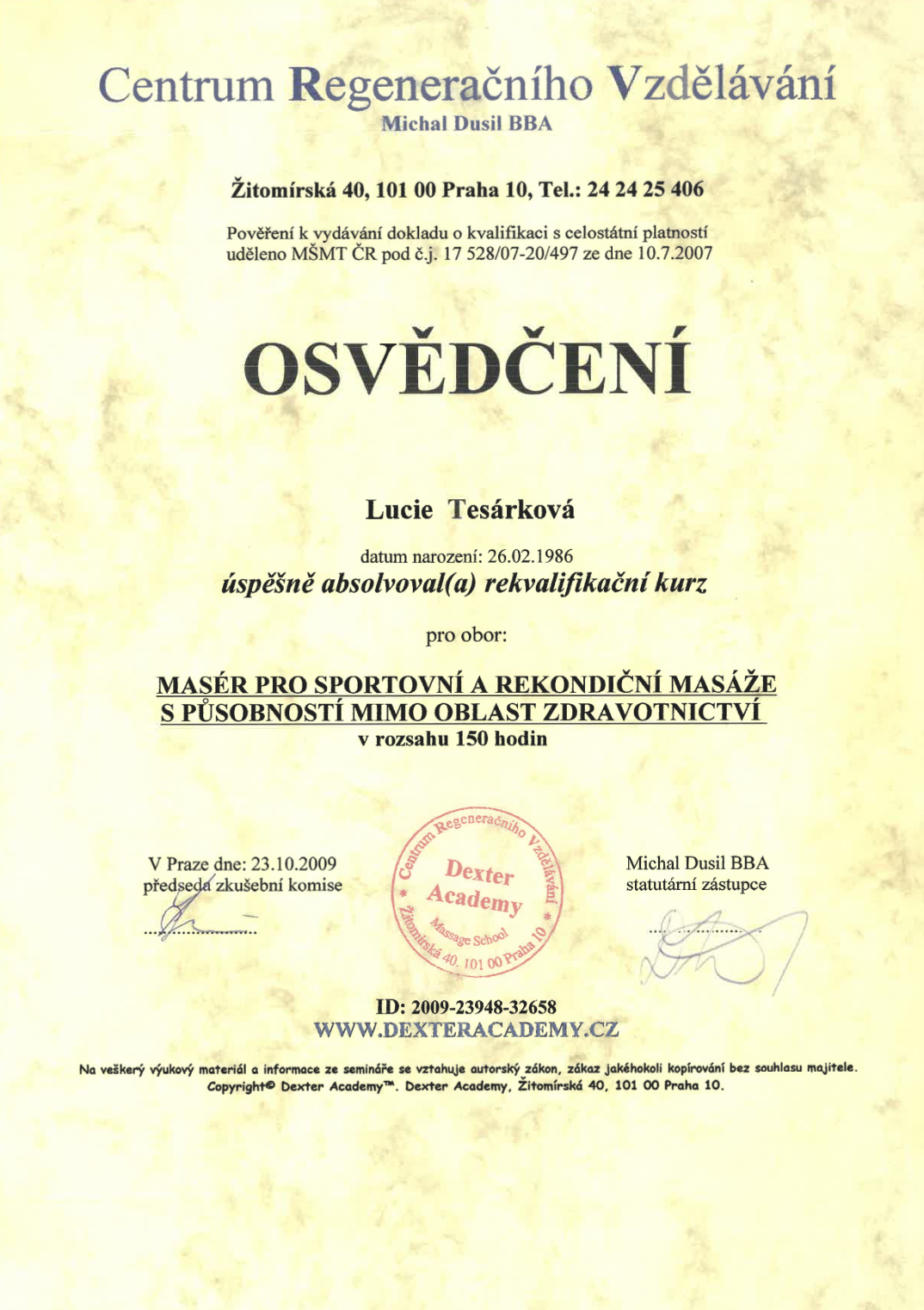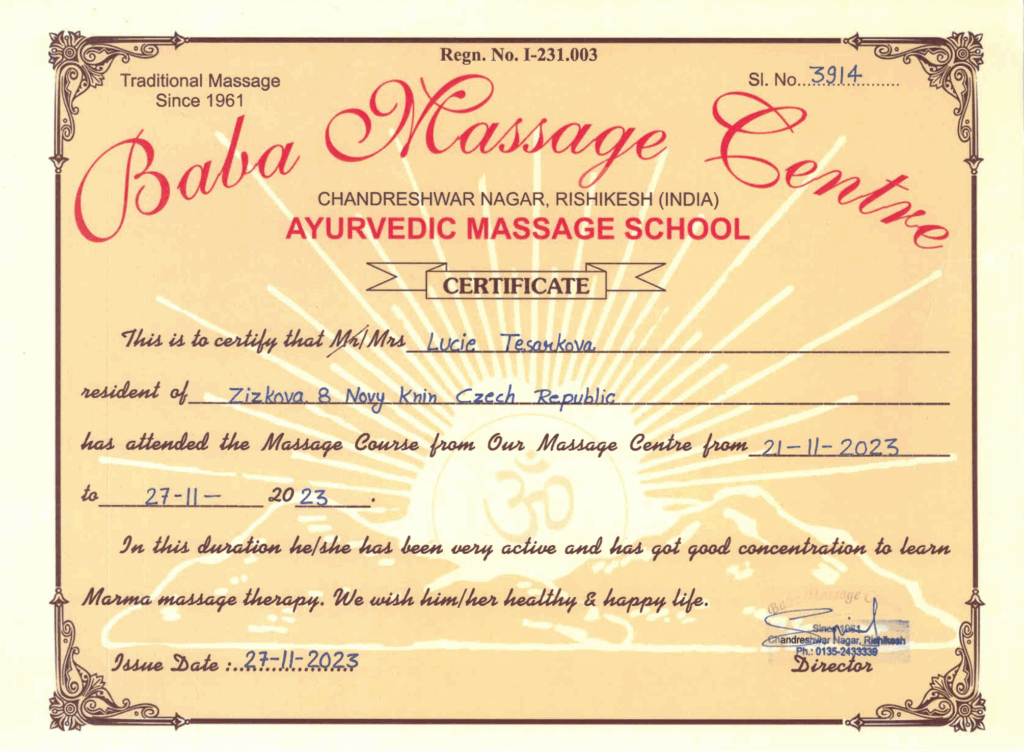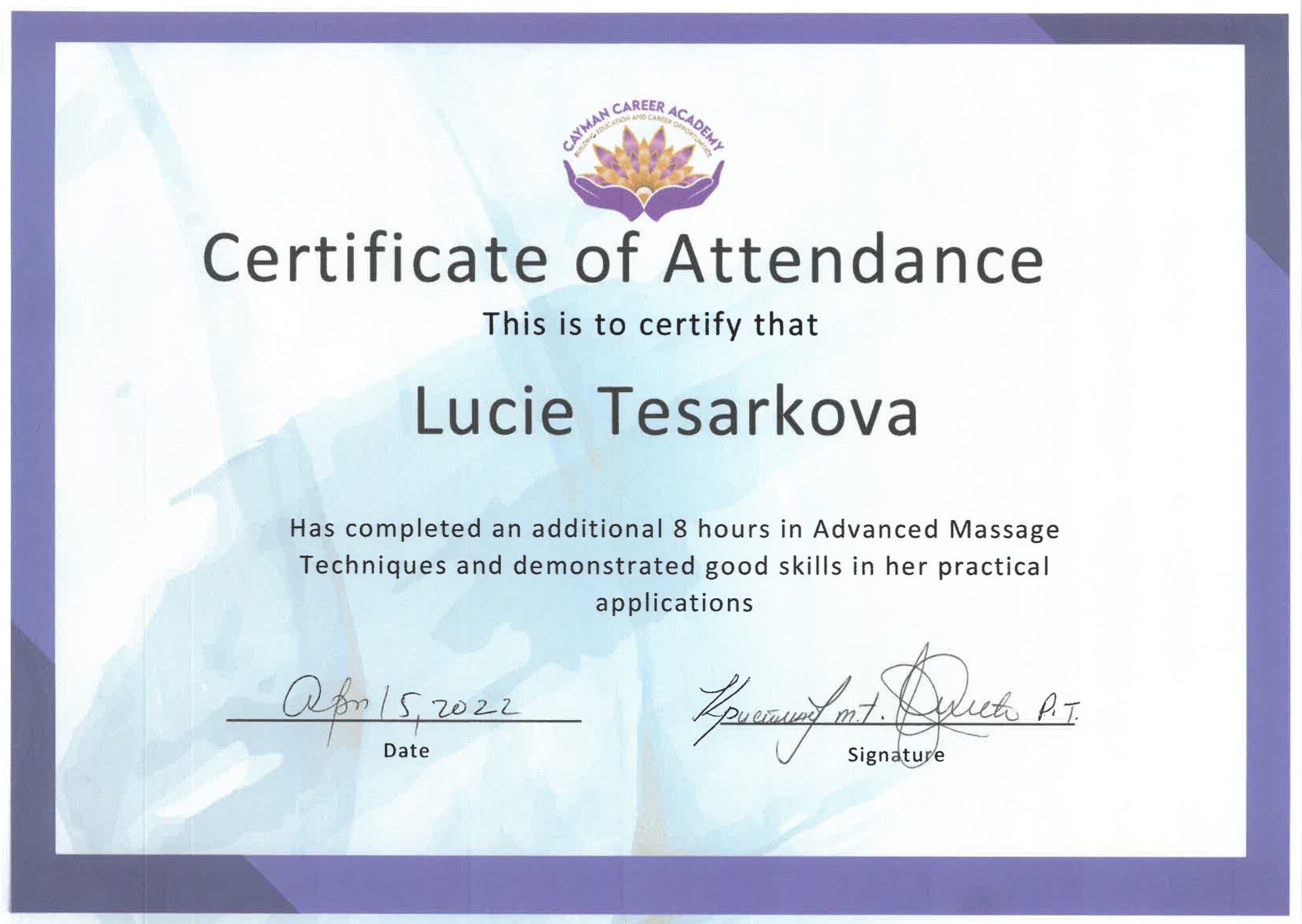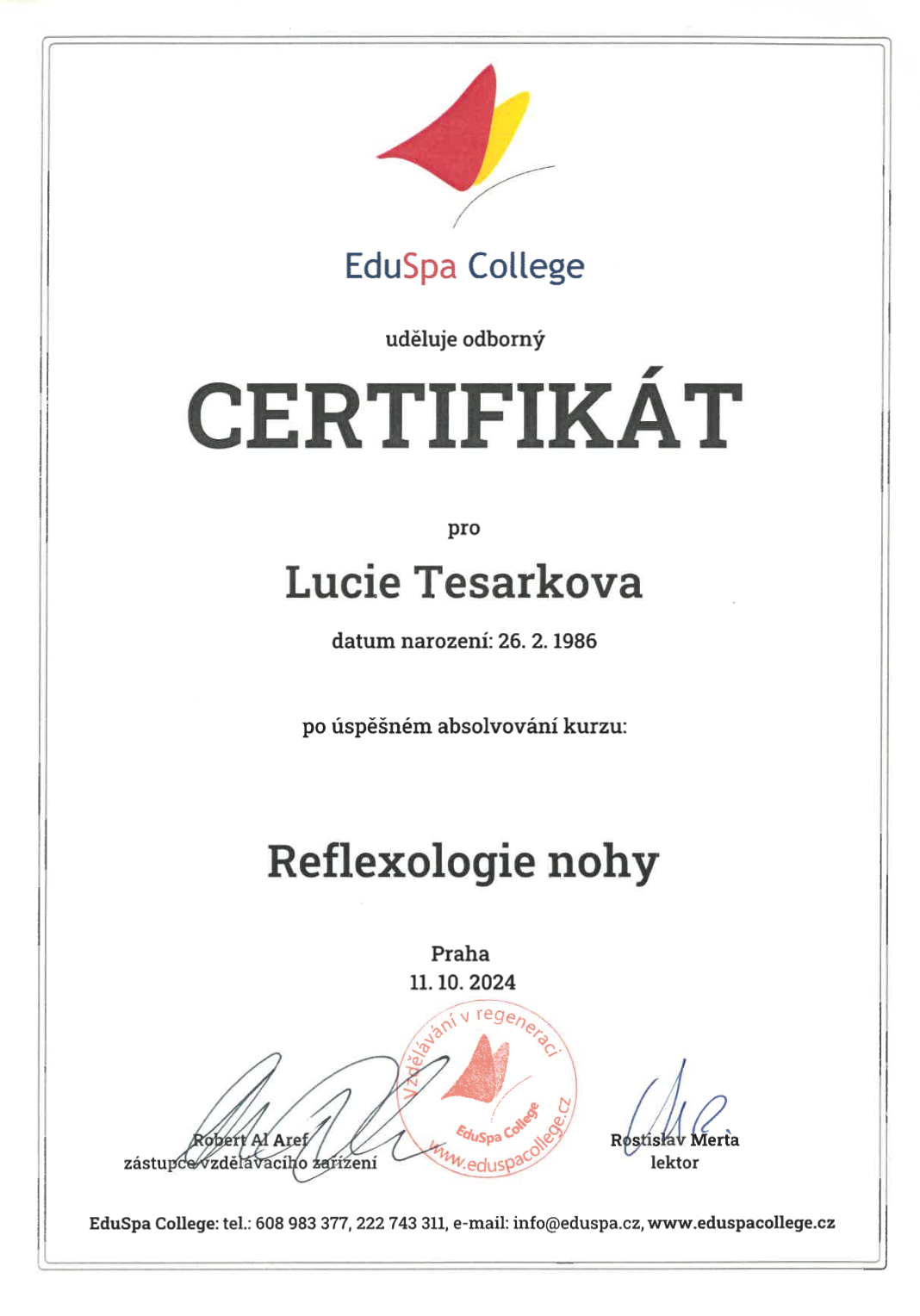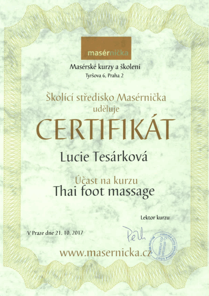 První kvalifikaci jsem získala v roce 2009, od té doby pomáhám lidem znovu objevovat rovnováhu těla, mysli i ducha, především pak jejich vitalitu – prostřednictvím osobitého, hluboce relaxačního Spa zážitku, který přináším přímo k Vám.